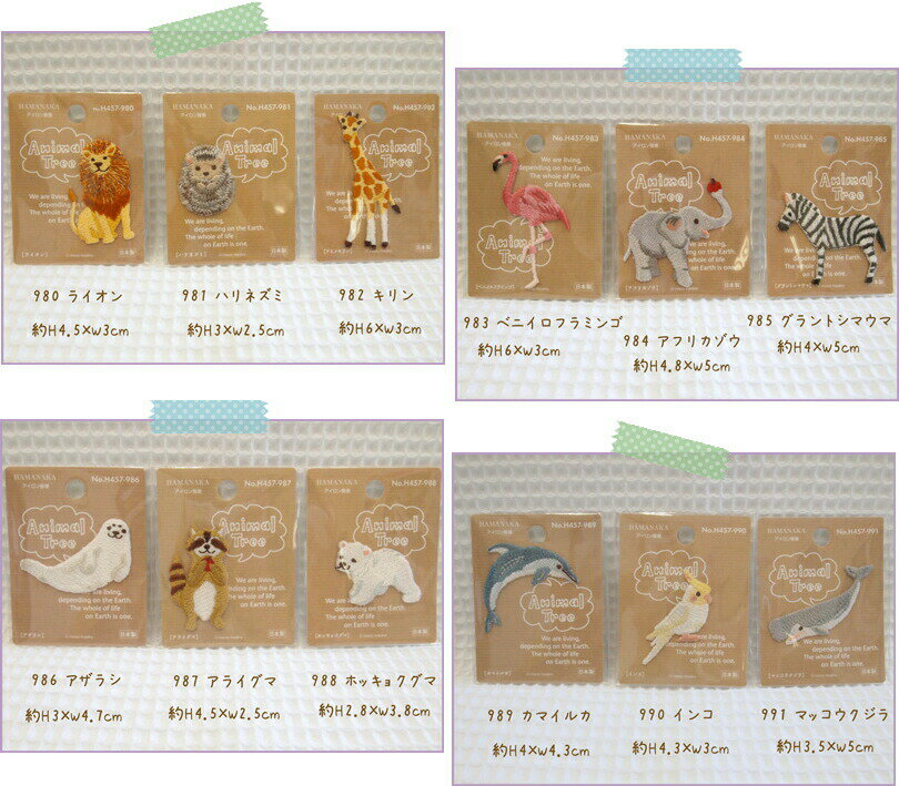 +++++++++++++++++++++++++++++++++++++++++++ アニマルツリー≪Animal Tree≫ 豊かな自然の中で暮らす野生動物たちを繊細なタッチで 刺しゅうしたワッペン(アップリケ)です。