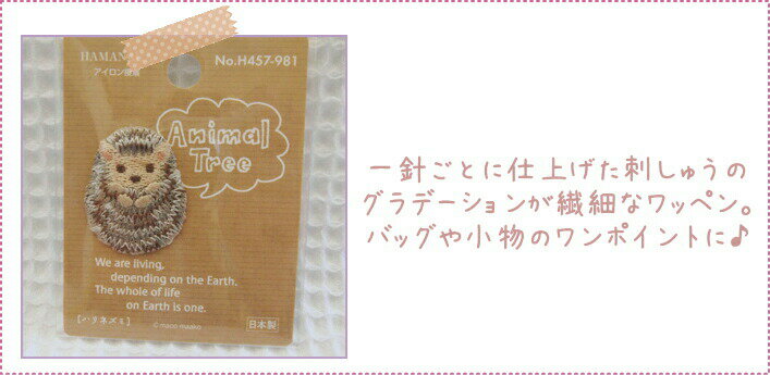 動物ワッペン(アップリケ)≪Animal Tree≫アニマルツリーどうぶつたちを繊細なタッチで刺しゅうしました。アイロン接着タイプ☆入園入学におすすめ☆/ハマナカ