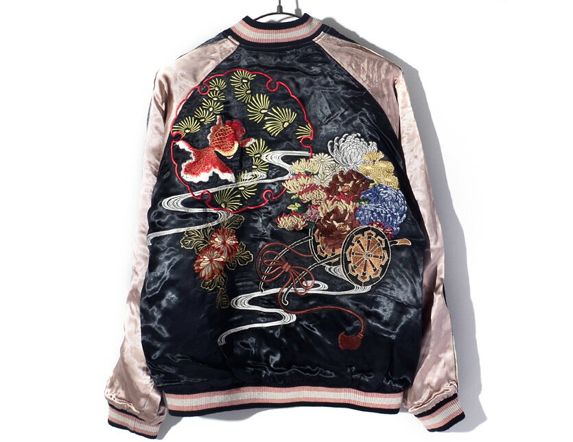 メーカー希望小売価格はメーカーサイトに基づいて掲載していますHANATABI GAKUDAN Flower Car & Goldfis Embroidered Reversible Souvenir Jacket 花旅楽団 花車と金魚 刺繍 リバーシブル スカジャン 花車とは様々な種類の花で飾られた車のことで 着物の柄などにもよく使用されます。